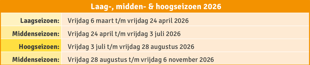 - Tafel + 4 kampeerstoelen: € 25,- per week.